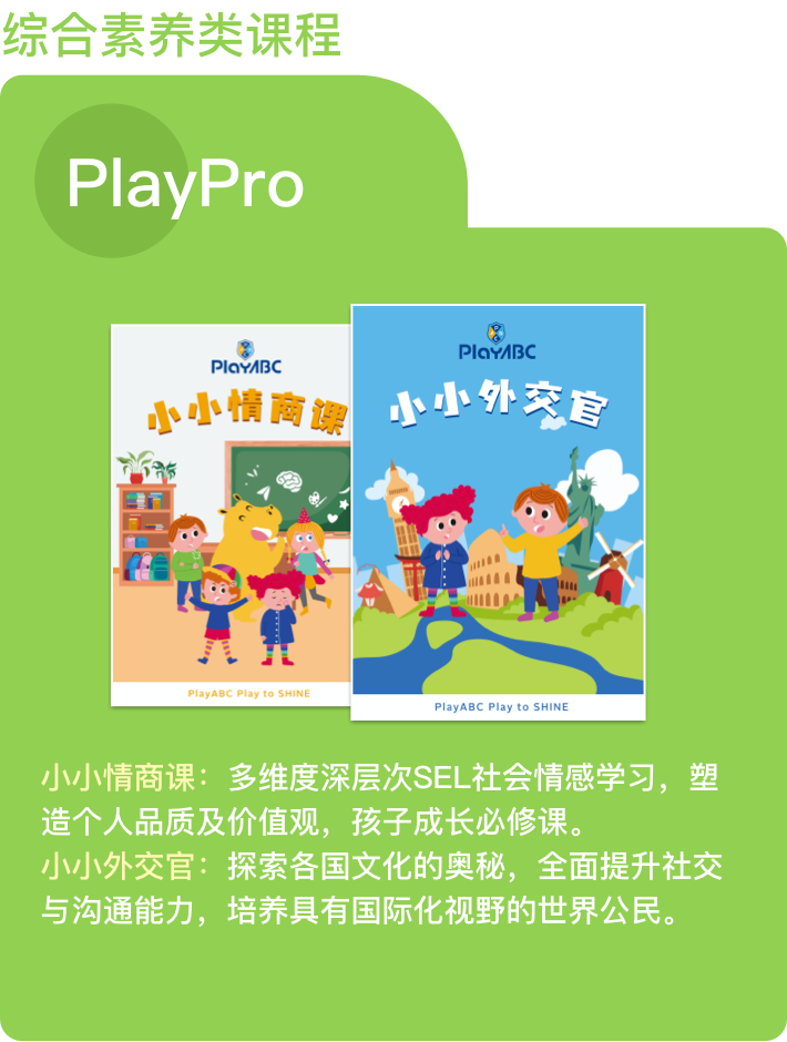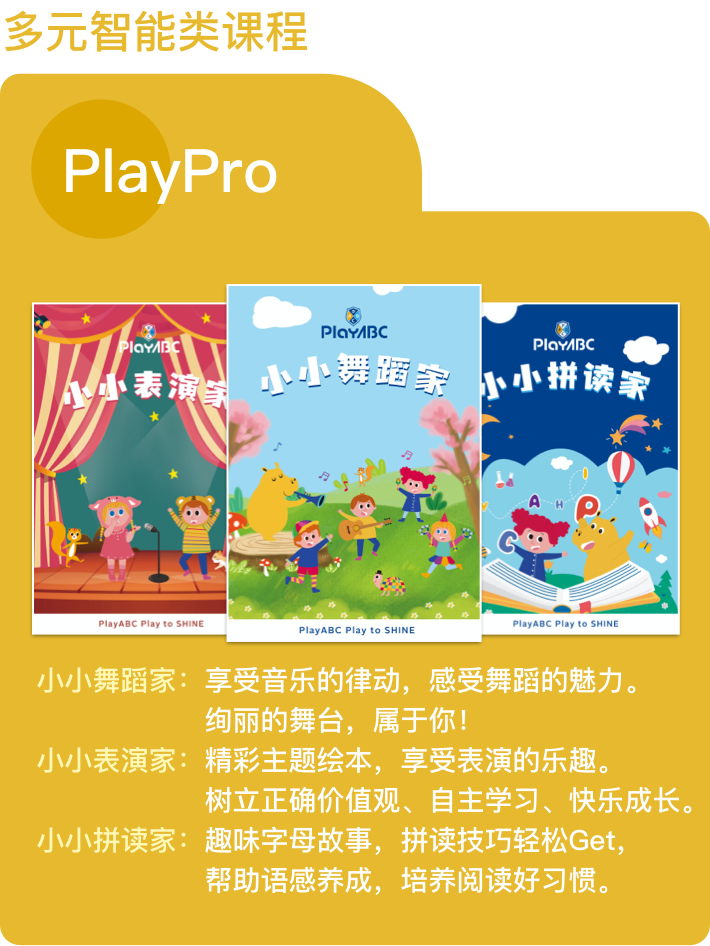 PlayABC旨在根据儿童成长规律,顺应孩子天性和成长节奏,使孩子从幼龄开始通过营造轻松、无压力的环境,让孩子快乐自然的成长,为未来打下良好基础,培养面对未来的五大学能。